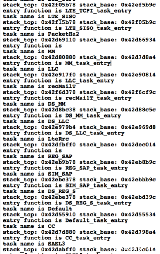Samsung的shannon 基带处理器上运行有一个实时操作系统(RTOS), 首先我们需要在dump文件中定位到在RTOS上运行的这些TASKs。
