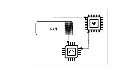 如图所示,在shannon处理器中,CP部分由一个Cortex-R7 ARM 核构成,AP部分则可能是Cortex-A53, Cortex-A72等,CP 和 AP 共用RAM。