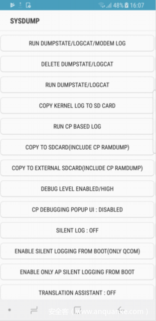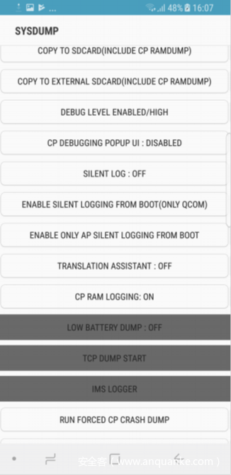 重新打开SYSDUMP菜单,并点击‘COPY TO SDCARD(INCLUDE CP RAMDUMP)‘按钮,将dump文件拷贝到SDCARD。这时在/sdcard/log下将有一个名为‘pcrash_dump_YYYYMMDD_HHSS.log’的文件。