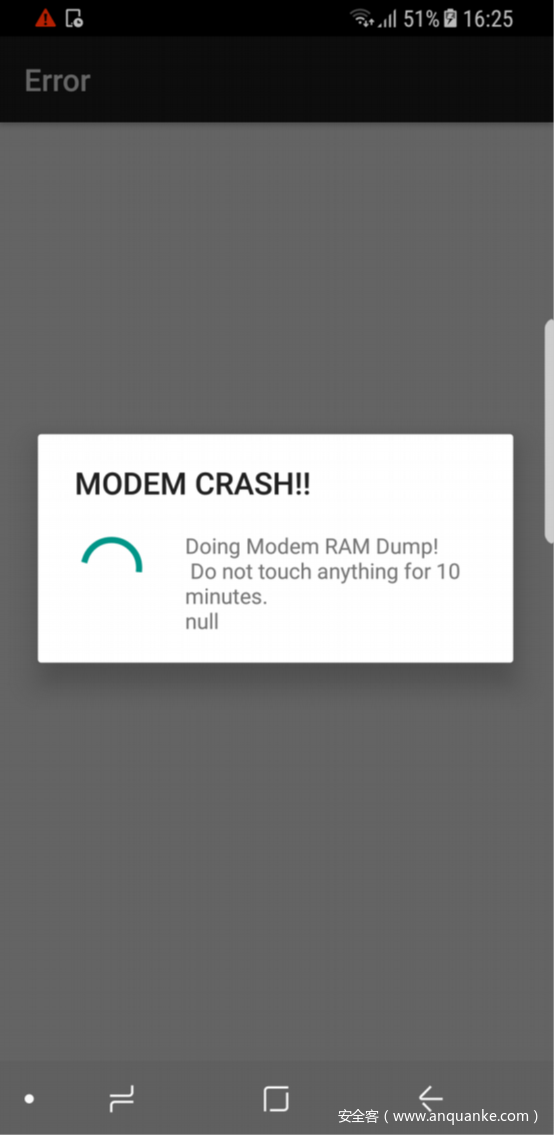 同时按住POWER键和VOLUME DOWN键超过10秒将手机关闭并再次开机,开始dump过程。