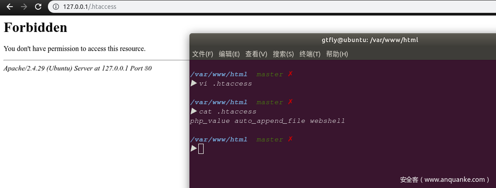 .htaccess文件是apache服务器的一种目录级别的修改配置的方式,可以用来配置当前目录及其所有子目录,常常被用于访问URL时重写路径;在此总结一下相关利用及bypass的方式