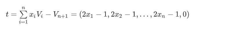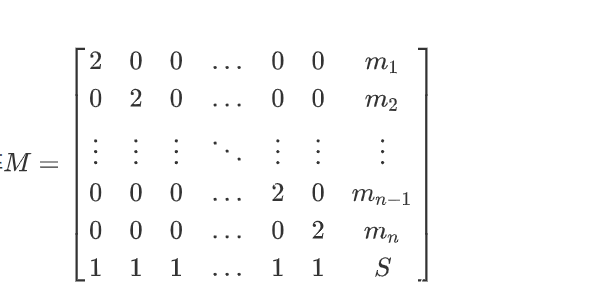 然后Eve从这个矩阵中,将每一条行向量划分出来,分别为V1,V2,…,Vn,Vn+1