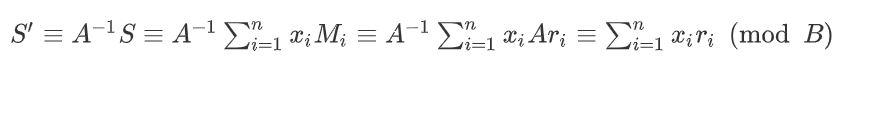 这里由于对参数A的不当选择,导致序列中较小的项乘以A后并没有被B模掉,也就导致了参数A的泄露。
