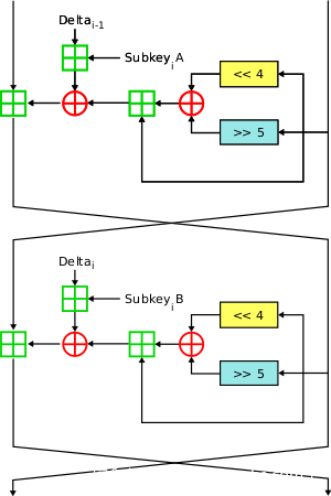 v0 += ((v1<<4) + k0) ^ (v1 + sum) ^ ((v1>>5) + k1);