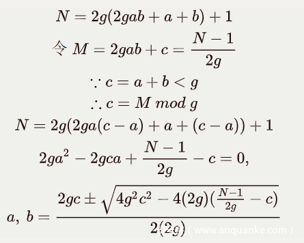 b = 0x436f6d6d6f6e207072696d652052534120697320612076617269616e74206f66205253410000000000000000000000000000000000000000000000000000000000416e642074686520636f6d6d6f6e20666163746f722067206973206c61726765207072696d6520616e6420703d3267612b3120713d3267622b31