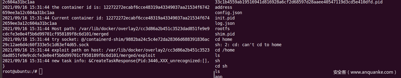 4. 利用containerd-shim的Create的API实现反弹shell,成功实现逃逸。