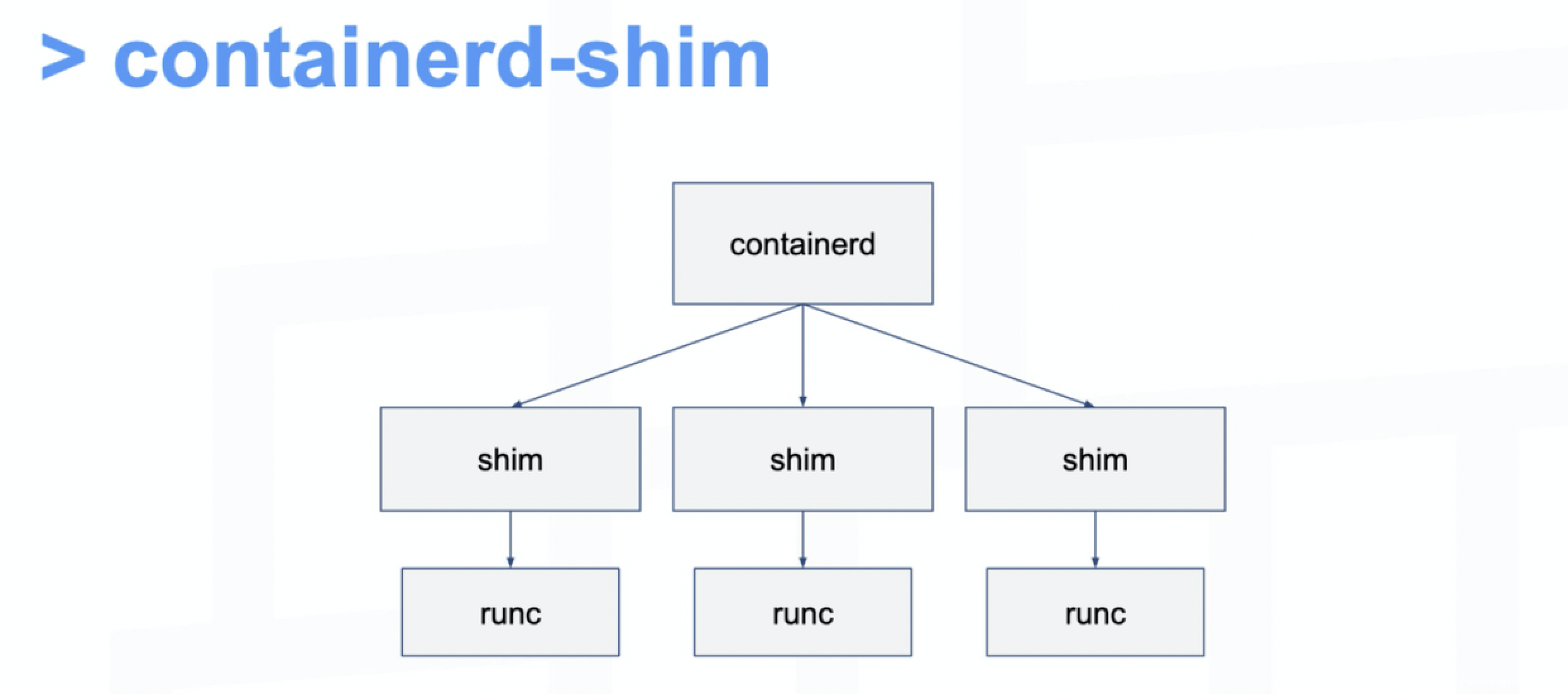 每次启动一个容器都会创建一个containerd-shim进程,它通过容器id, bundle目录,运行时二进制文件路径来调用运行时的API创建和运行容器,该进程会一直存在到容器实例进程退出为止,最后将容器的退出状态返回给containerd。