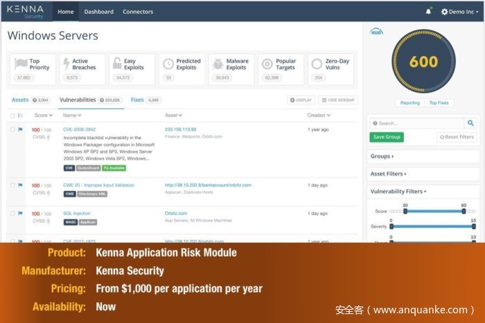 主要特性:Kenna应用风险模块会把静态和动态应用安全测试中的信息,漏洞赏金和漏洞情报对威胁进行等级评估。它是Kenna安全平台的一部分。