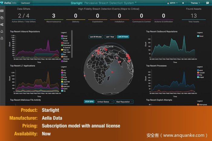 主要特性:Aella Data计算自己的Starlight入侵检测系统可在几分钟内检测到入侵。其网络遥测技术会在第4到7层之间捕捉信息,因此它可以识别对话持续时间以及被使用的应用有哪些。