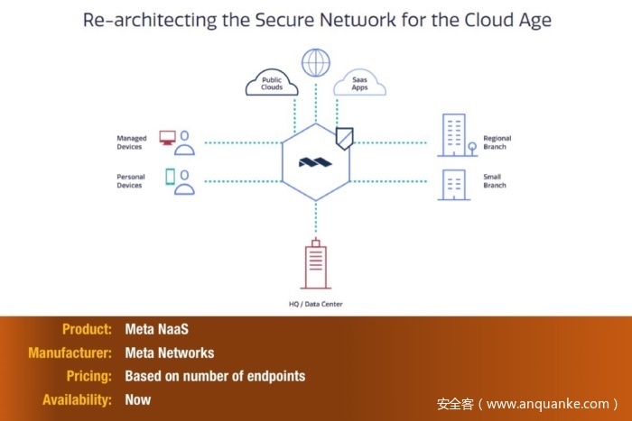 主要特性:Meta NaaS 为一个全球化的虚拟覆盖网络提供了一个全球主线路,可基于身份识别策略在一个软件定义型周边中传输数据和保护数据。审计和分析工具支持异常检测和服从性检测。