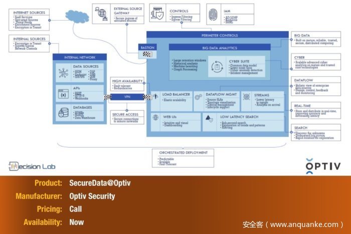 主要特性:作为一个部署安全数据湖参考架构,SecureData@Optiv可用来执行安全功能的分析,包括态势感知仪表盘,紧急事件检测和响应,漏洞扫描,服从性和电子搜寻。它安装在开源的大数据平台,包括Elastic, Splunk,Phantom Cyber和Steamsets。