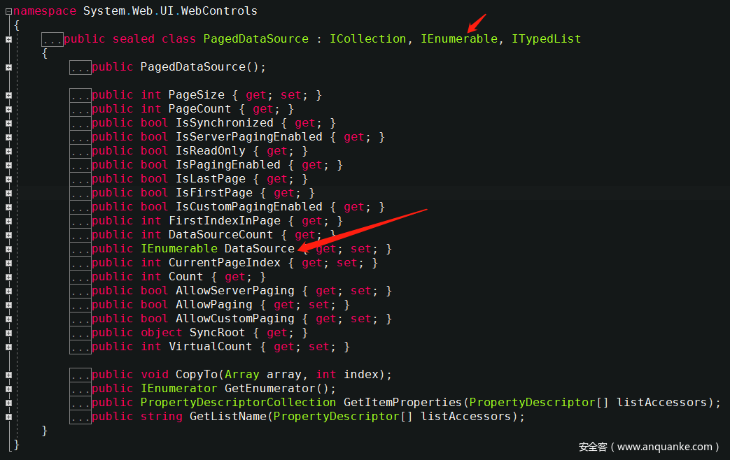 上图将变量e3填充到了分页控件数据源,查看PageDataSource类定义一目了然,