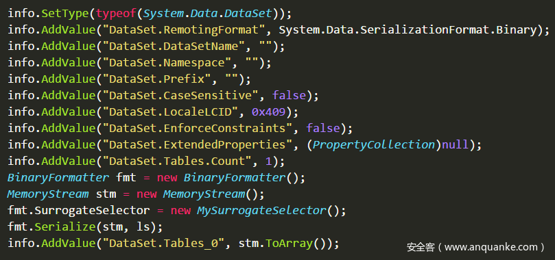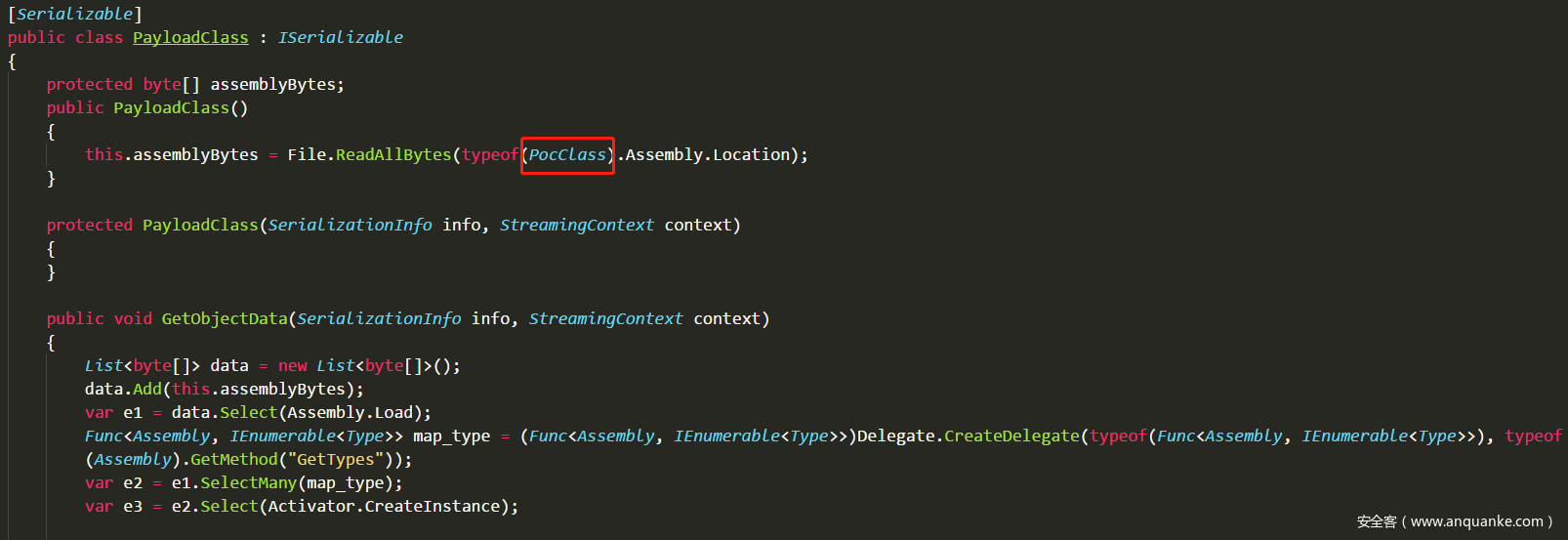 下图定义了PayloadClass类实现ISerializable接口,然后在GetObjectData方法里又声明泛型List集合接收byte类型的数据