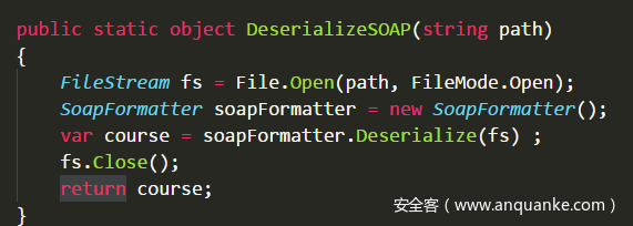 这段是摘自某个应用的代码片段,在审计的时候只需要关注DeserializeSOAP方法中传入的path变量是否可控。