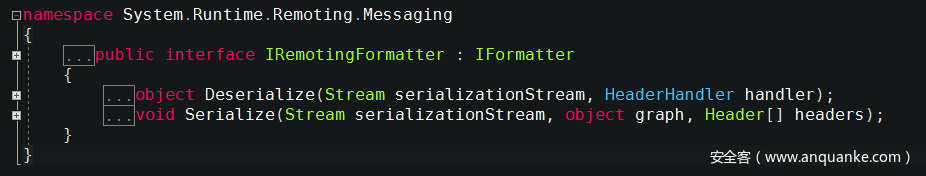 查看IRemotingFormatter接口定义得知也是继承了IFormatter