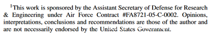 “此项工作由国防部国防研究与工程办公室副主任在空军FA8721-05-C-0002号合同框架内赞助。本文任何意见,解释,结论和建议是作者的观点,不一定得到美国政府的认可。”