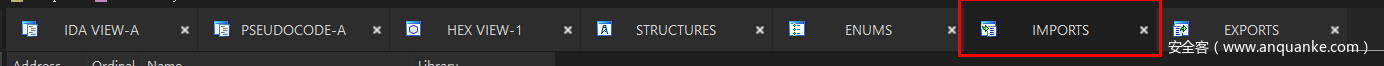 同样的,先分析程序的导入表,打开名为IMPORTS的窗口
