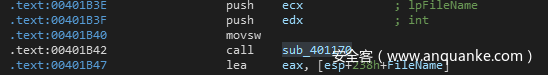 同时可以看到,call sub_4018B0执行完之后,edi赋值为 [esp + 230h + FileName]