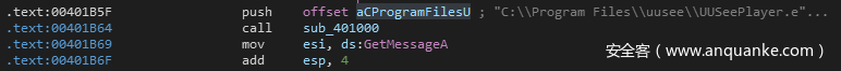接着进行一段时间的休眠,然后将另外一个路径C:Program FilesuuseeUUSeePlayer.exe作为参数传递到sub_401000函数中执行。