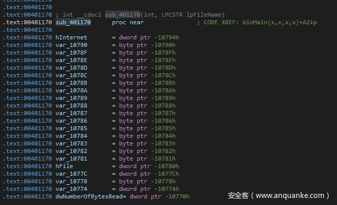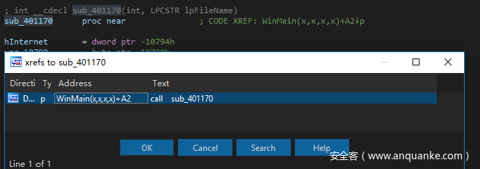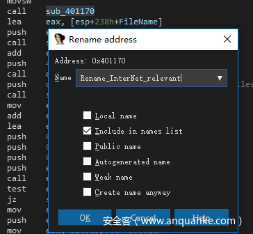 接着单击ok,接下来sub_401170这个函数就被重命名为了Rename_InterNet_relevant