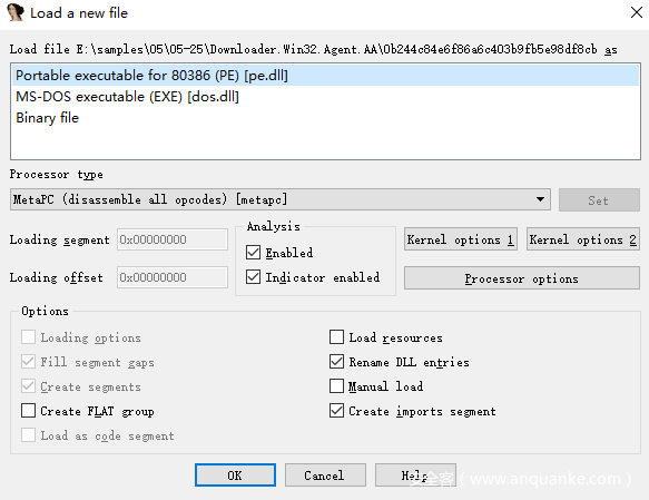 这里可以看到,IDA自动识别到了该程序是一个PE文件,直接单击OK