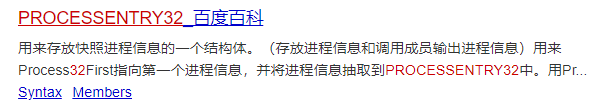 我们查询一下PROCESSENTRY32可以得知该结构体存储的是快照进程信息