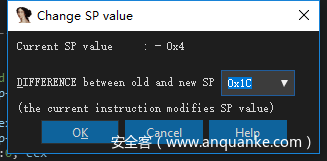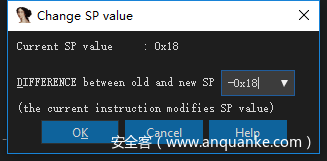 这里可以看到,Current SP value 是0x18,但是下面的值却是0x4,这里堆栈不平衡了,我们将下面的0x4修改为-0x18