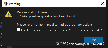 然后单击ok,按下F5,还是提示无法反汇编