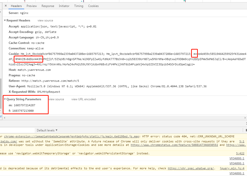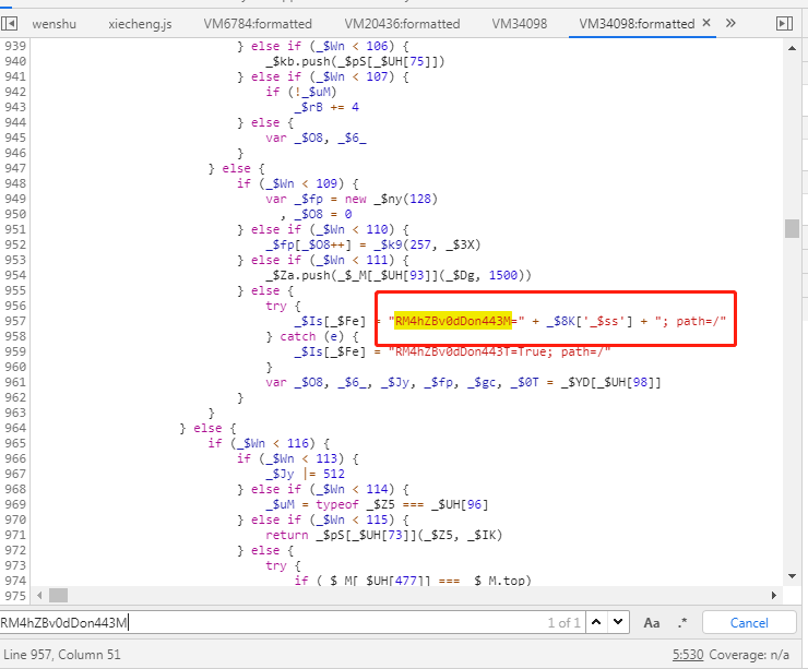 cookie中包含了 m 和 RM4hZBv0dDon443M 字段,多次翻页后发现 RM4hZBv0dDon443M 字段名不会改变,因此我们从这个字段名入手。