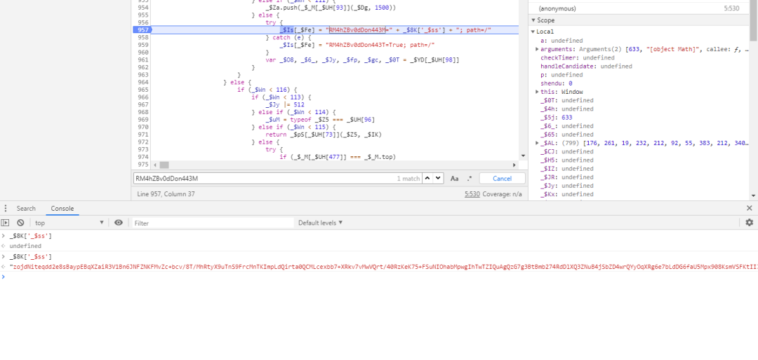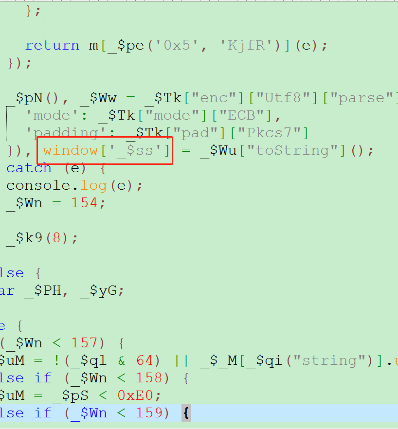 加密地方知道了,现在就看 _$8K['_$ss'] 这个值是哪里生成的了,搜索'_$ss' 发现搜索不到,因为 _$8K 是window这个对象,所以这个时候可以用 油猴脚本来Hook,不过我对还原这段被混淆了的代码更感兴趣,既然学过AST,不用,那学来干嘛呢?
