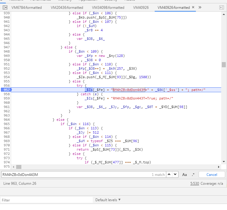 果然是 设置cookie的语句,不过现在的值还是undefined,多执行几次,就能看到值了: