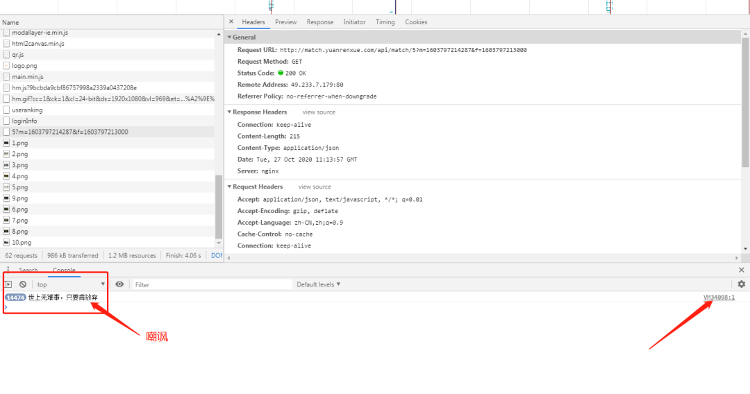 控制台 有一段 嘲讽 在不断的打印,右边有个VM,如图: