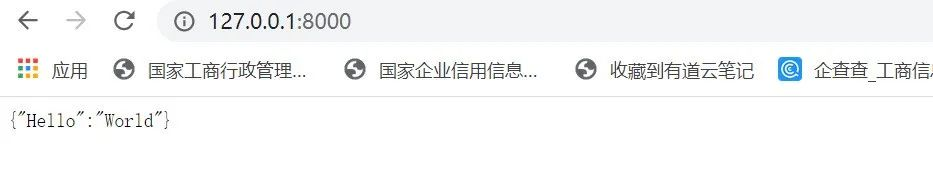 或者http://localhost:8000 ,你就可以拿到hello方法(默认路由)返回的JSON格式响应结果了: