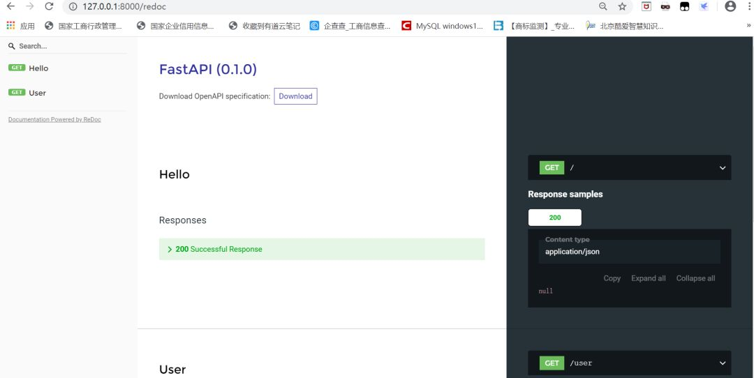 我们创建的应用,FastAPI给我们也创建好相应的接口文档,方便使用者的调用和查看,对开发者来说非常友好,也省去了我们写文档的时间了!