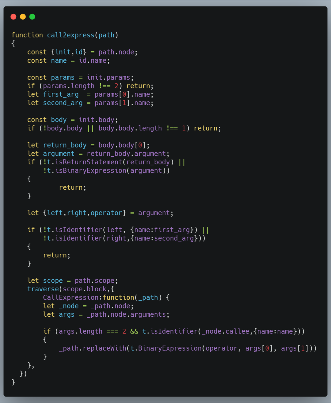 _path.replaceWith(t.BinaryExpression(operator, args[0], args[1]))