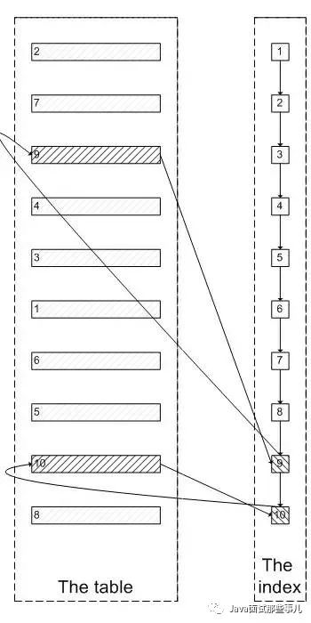 像上面这样,需要查询300005次索引节点,查询300005次聚簇索引的数据,最后再将结果过滤掉前300000条,取出最后5条。MySQL耗费了大量随机I/O在查询聚簇索引的数据上,而有300000次随机I/O查询到的数据是不会出现在结果集当中的。