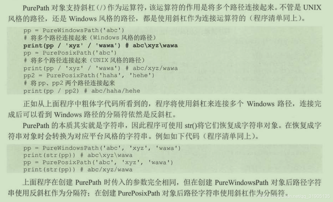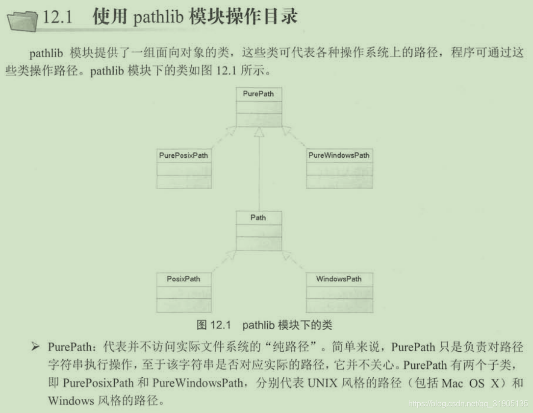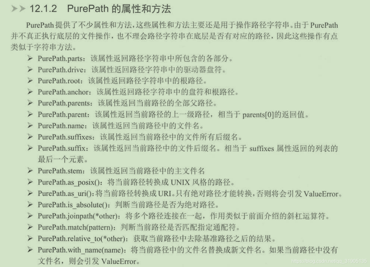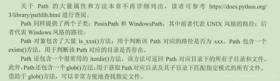 Path是 PurePath的子类,它除了支持PurePath的各种操作,属性和方法之外,还会真正的访问底层的文件系统,包括判断Path对应的路径是否存在,获取Path对应路径的各种属性,如是否只读,是文件还是文件夹等,甚至可以对文件进行读写。