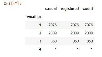 count_weather = Bikedata.groupby('weather')