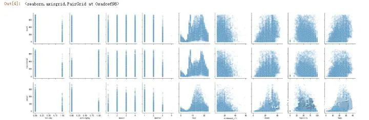#对于整体数据,我们希望查看与三个租赁数量相关的其他特征值的关系,可以选用seaborn包的pairplot函数(多变量图)