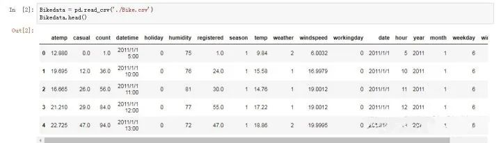 数据采用kaggle中的共享单车项目,比赛提供了跨越两年的每小时共享单车租赁数据,包含天气信息和日期信息。