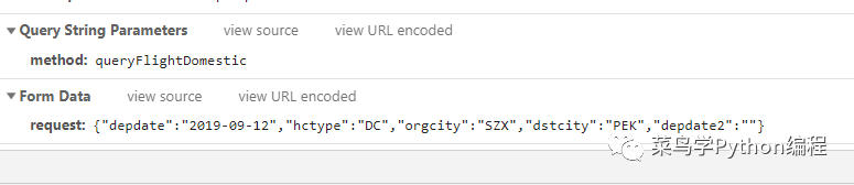 'request': '{"depdate":"2019-09-12","hctype":"DC","orgcity":"SZX","dstcity":"PEK","depdate2":""}'