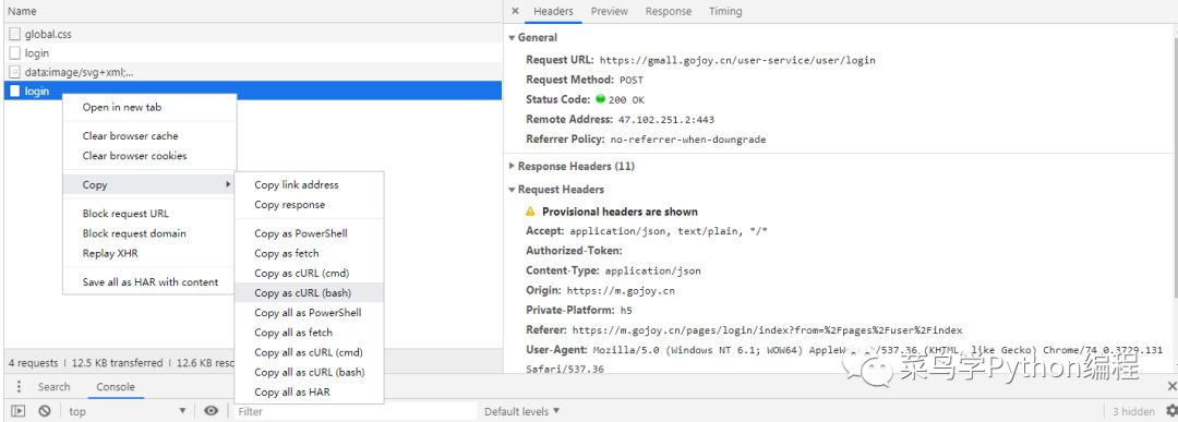 Copy as cURL(bash)