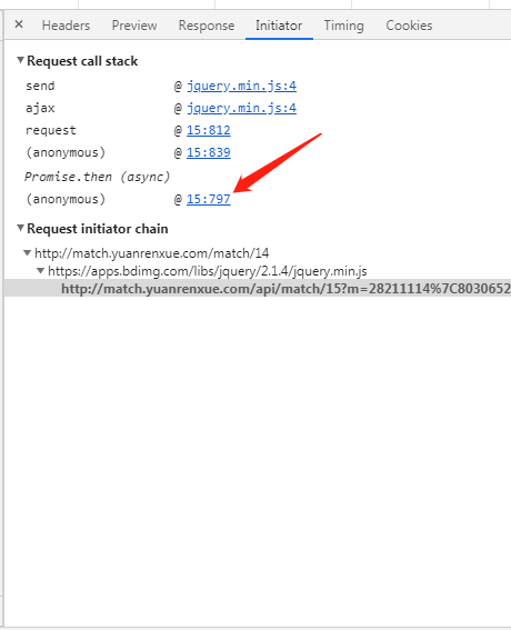 cookie无加密,有个params参数m,切换 Initiator,查看调用栈: