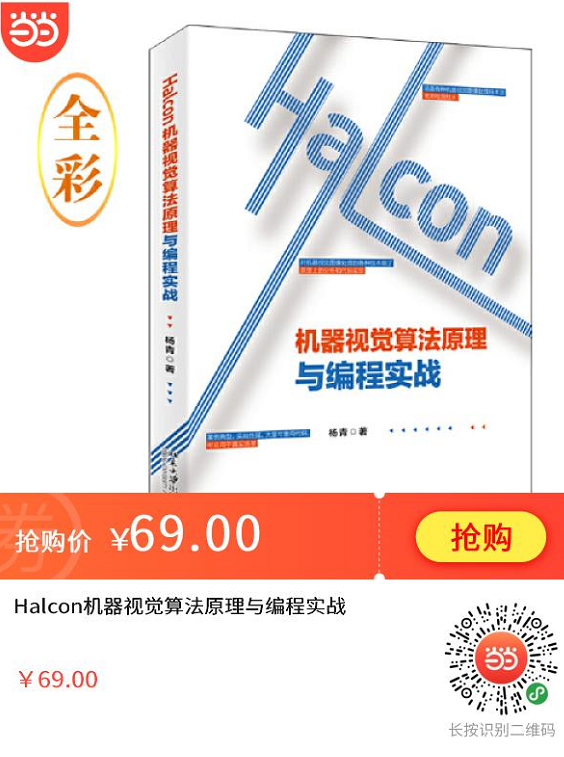 同时给大家一份福利,留言赠书,共五本!感兴趣的同学可以参与一下,奖品是新书《Halcon机器视觉算法原理与编程实战》