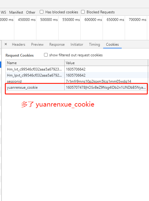 第二次请求的cookie是这样的:
