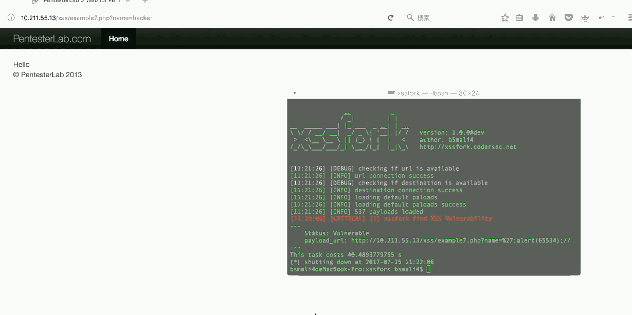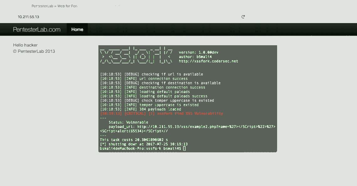 开源只为分享,请勿将本脚本做任何商业性质的集成。开发的时候,有可能很多情况没有考虑到,如果你有更好的建议或者发现bug,可以联系我邮箱root@codersec.net ,xssfork.codersec.net网站还在建设中,github不要吝啬你的star。