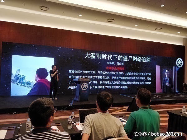 演讲嘉宾:刘新鹏 (水滴安全实验室安全研究员;专注僵尸网络追踪),胡付博 (水滴安全实验室安全研究员;黑产溯源、威胁情报追踪)