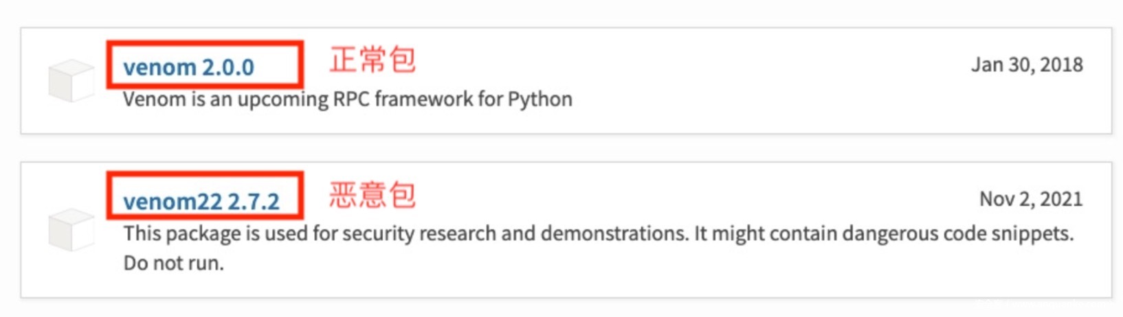 该恶意包与正常pip包venom名称极为相似,疑似模仿包名用于投毒行为,如果用户安装pip包手误敲错相关命令,则很有可能遭受攻击。