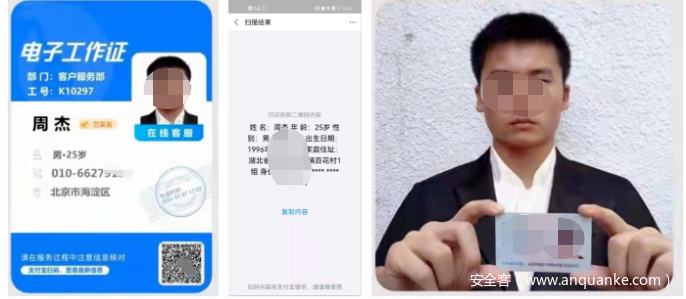 5诈骗分子通过屏幕共享获取京东登录验证码后,远程网页登录受害人京东,在客服对话界面发布伪造的京东金融工作证、京东公司授权处理“校园贷”证书、银监会等部门加强校园贷管理的通告等内容,增强受害人的信任。